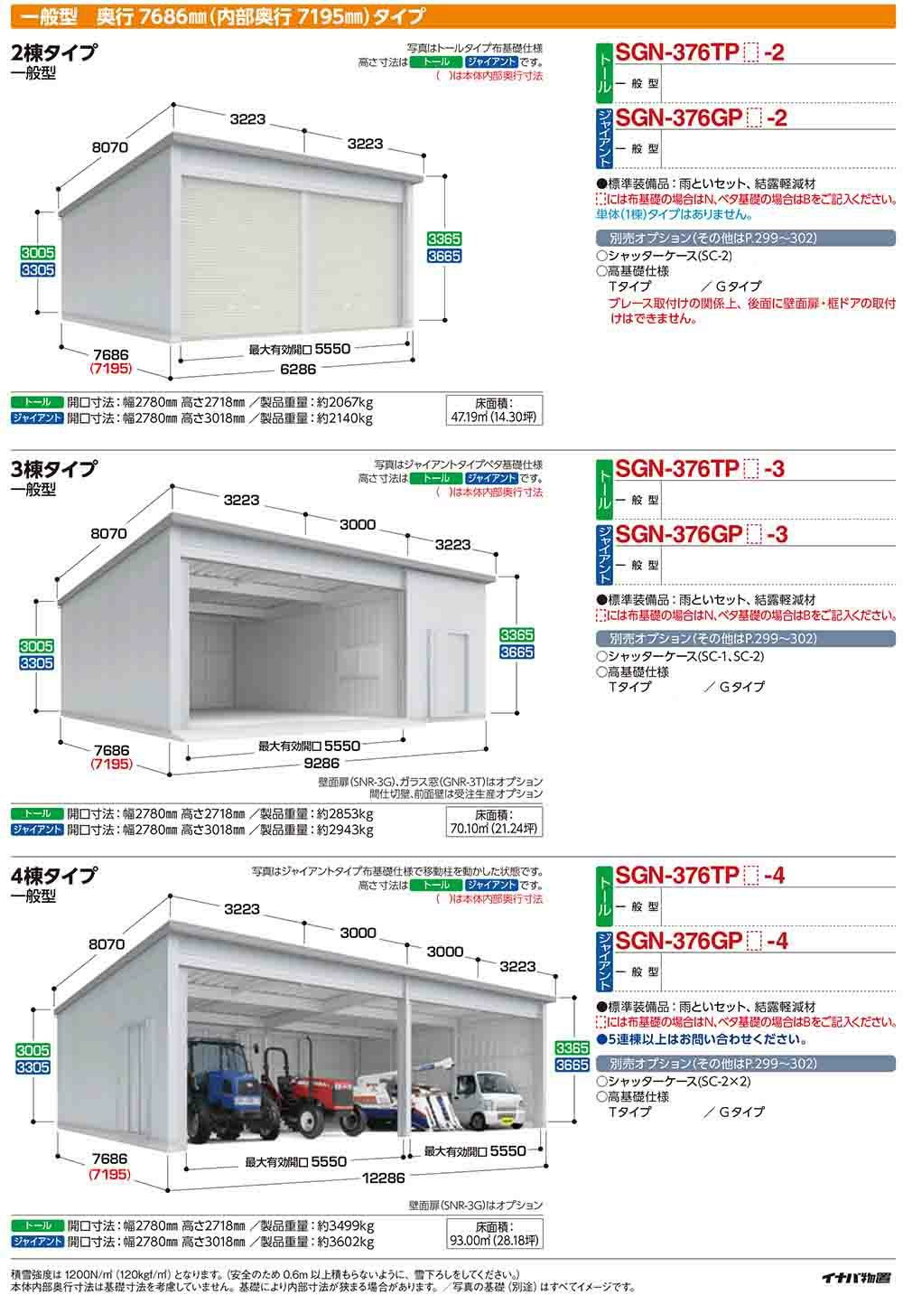 イナバ倉庫・ガレージ SGN-376GPN-3 布基礎 ジャイアント 3棟タイプ 一般型 幅9286×奥行7686×高さ3665