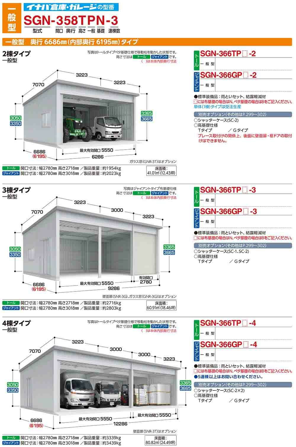 イナバ倉庫・ガレージ SGN-376TPN-2 布基礎 トール 2棟タイプ 一般型 幅6286×奥行7686×高さ3365