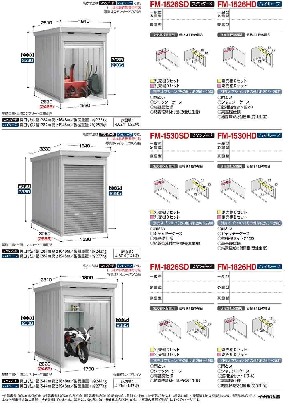 バイク保管庫 バイクガレージ FM-1530SD 連続型(1棟目) 土間タイプ スタンダード 豪雪型 間口1530×奥行3050×高さ2085