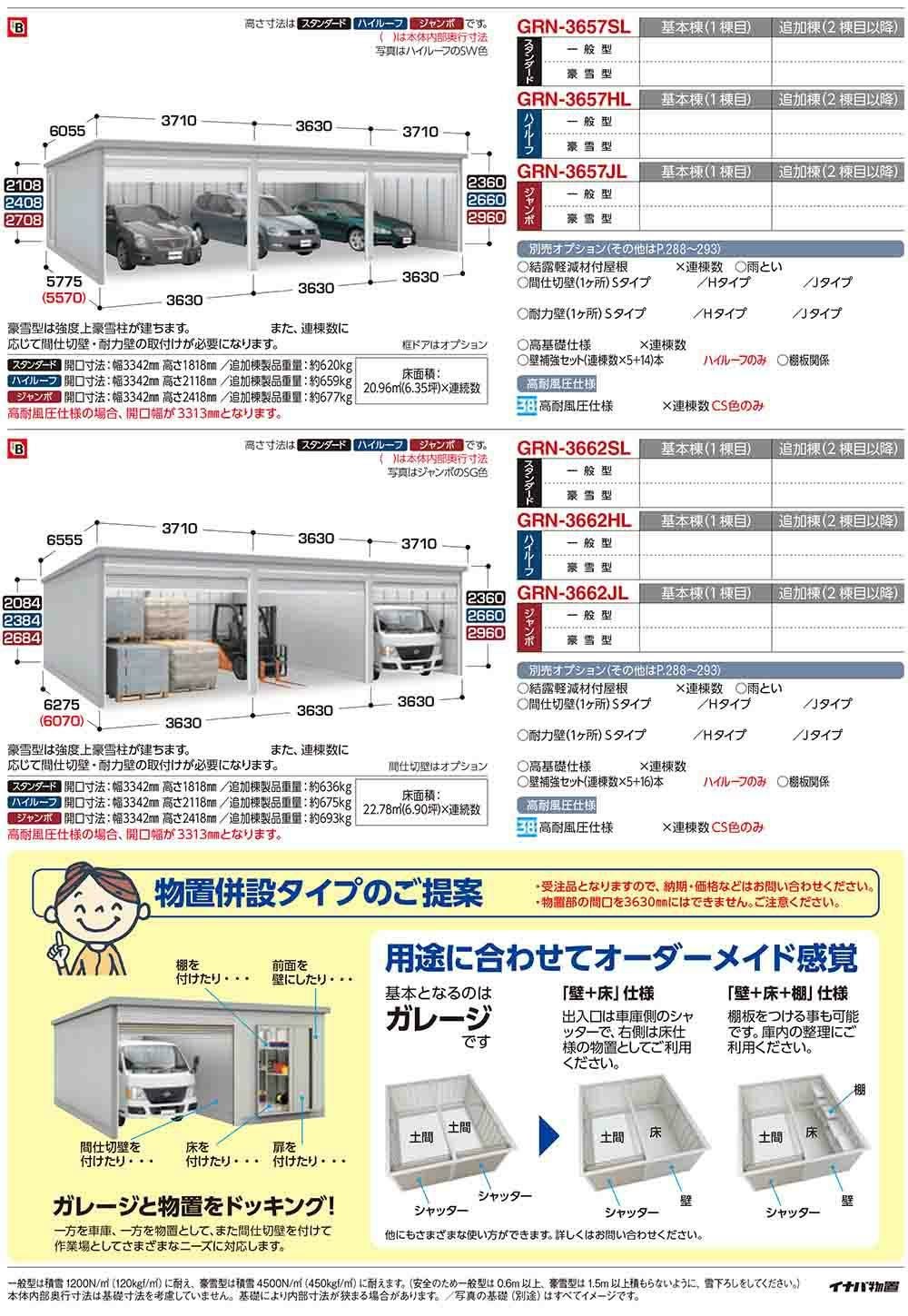 ガレーディア ガレージ GRN-3662JL 3台以上収納タイプ ジャンボ 基本棟(1棟目) 豪雪型 幅3630×奥行6275×高さ2960