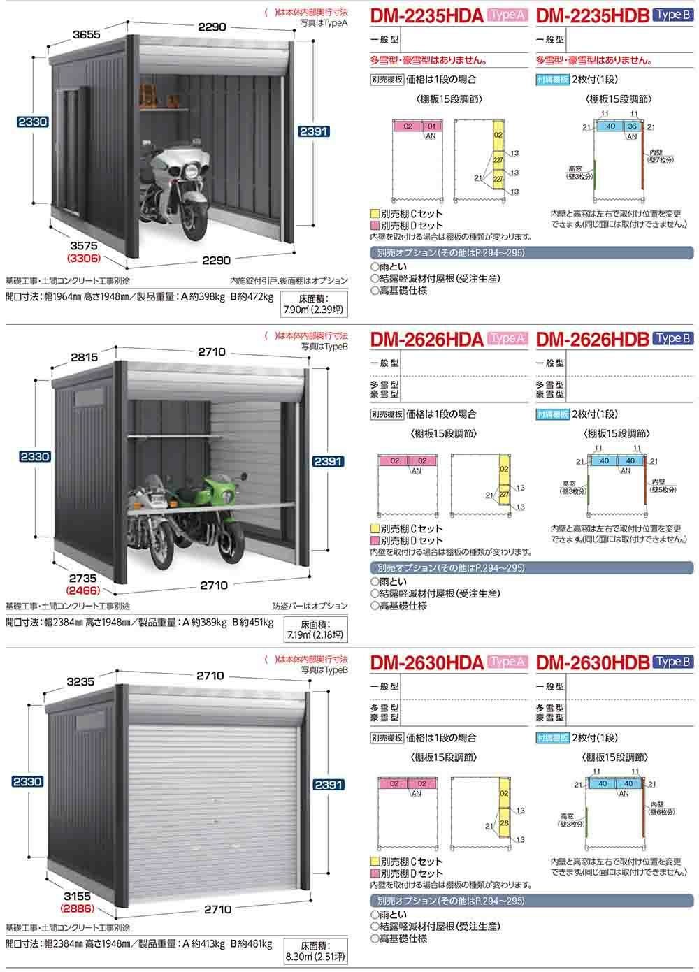 アルシアフィット バイクガレージ DM-2235HDB 土間タイプ TypeB 一般型 幅2290×奥行3575×高さ2391