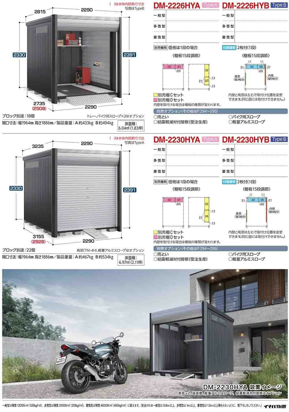 アルシアフィット バイクガレージ DM-2226HYA 床付タイプ TypeA 多雪型 幅2290×奥行2735×高さ2391