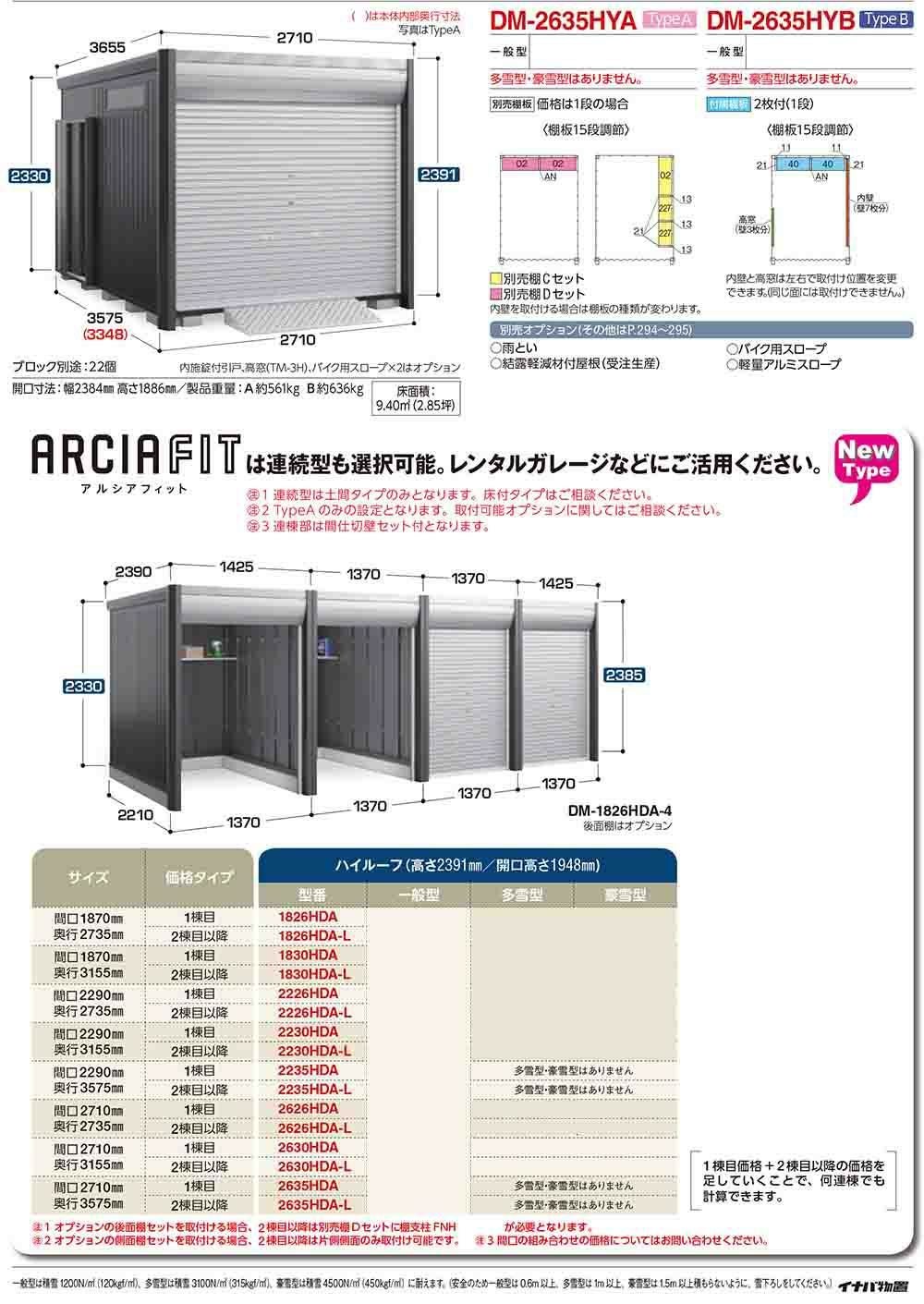 アルシアフィット バイクガレージ DM-2635HDA 土間タイプ TypeA 一般型 幅2710×奥行3575×高さ2391