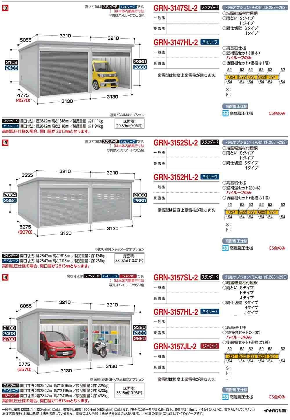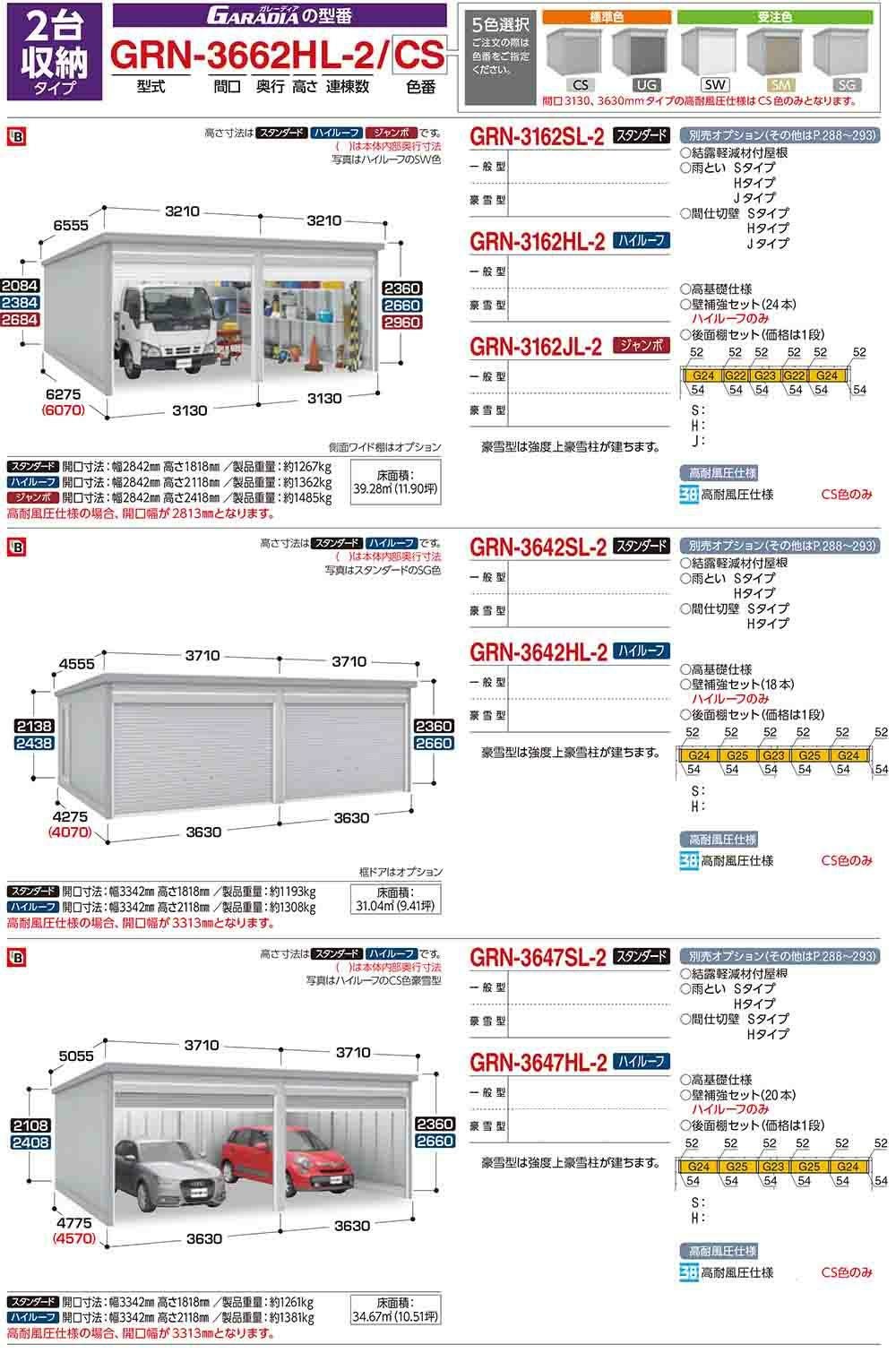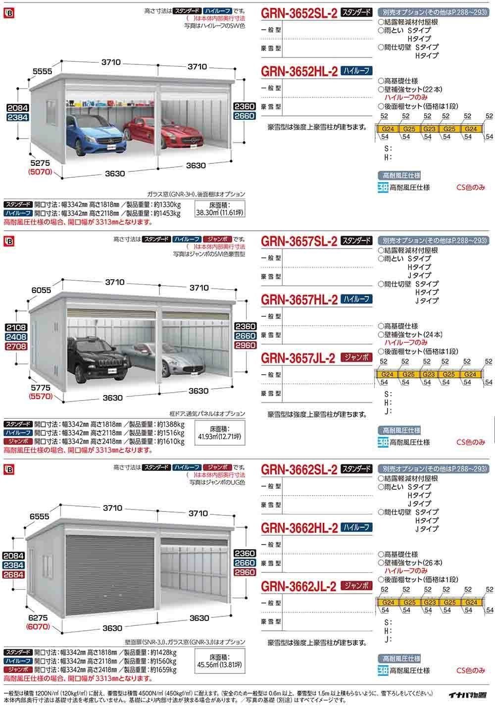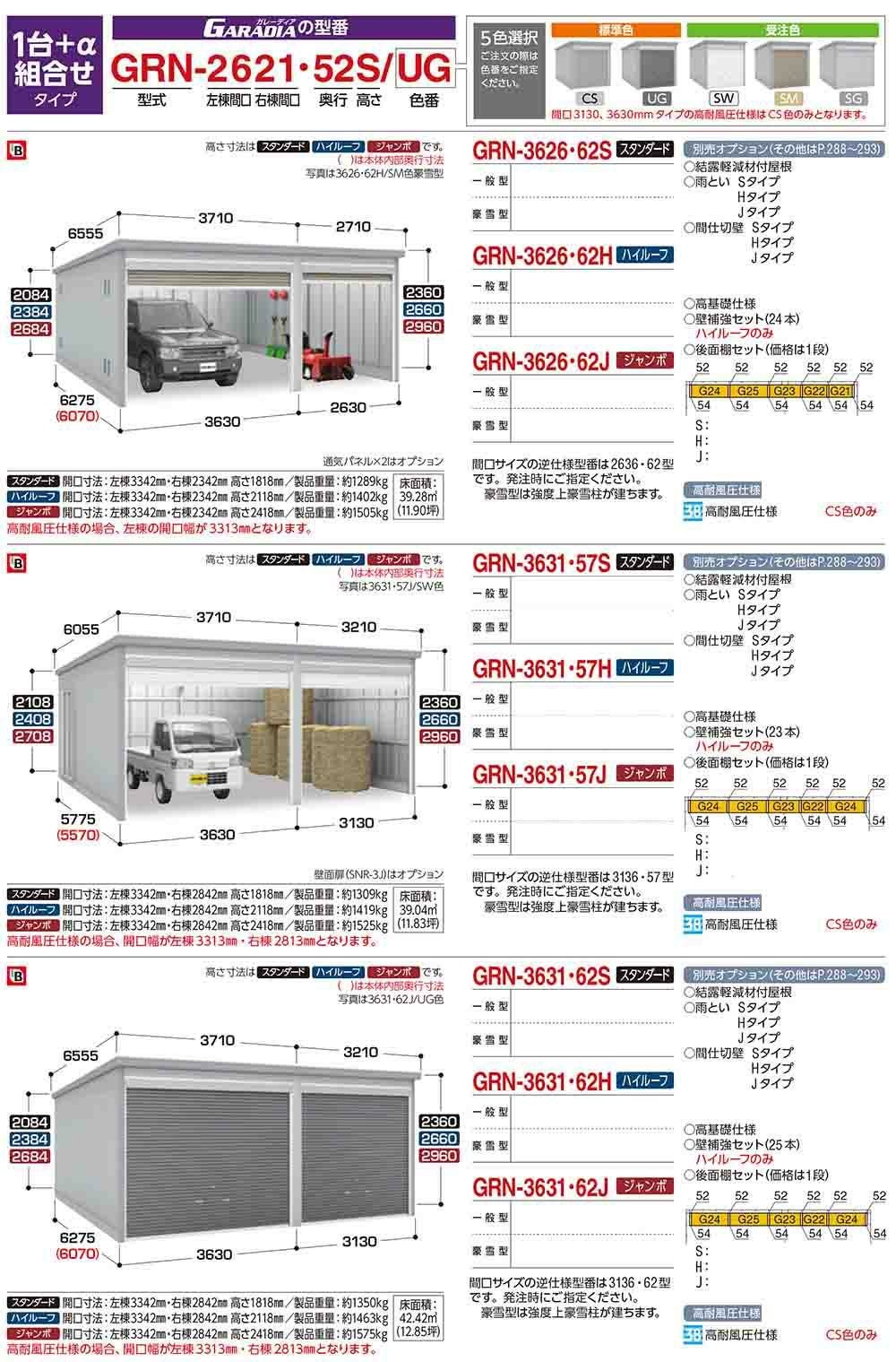 ガレーディア ガレージ GRN-3126・57J 1台+α組合せタイプ ジャンボ 間口サイズ:通常仕様 豪雪型 幅5760×奥行5775×高さ2960