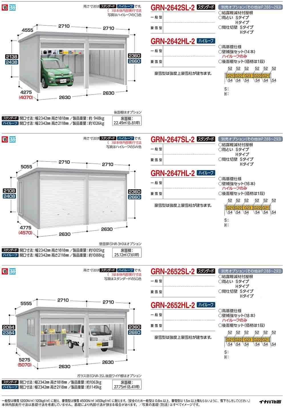 ガレーディア ガレージ GRN-2621・52S 1台+α組合せタイプ スタンダード 間口サイズ:通常仕様 豪雪型 幅4760×奥行5275×高さ2360
