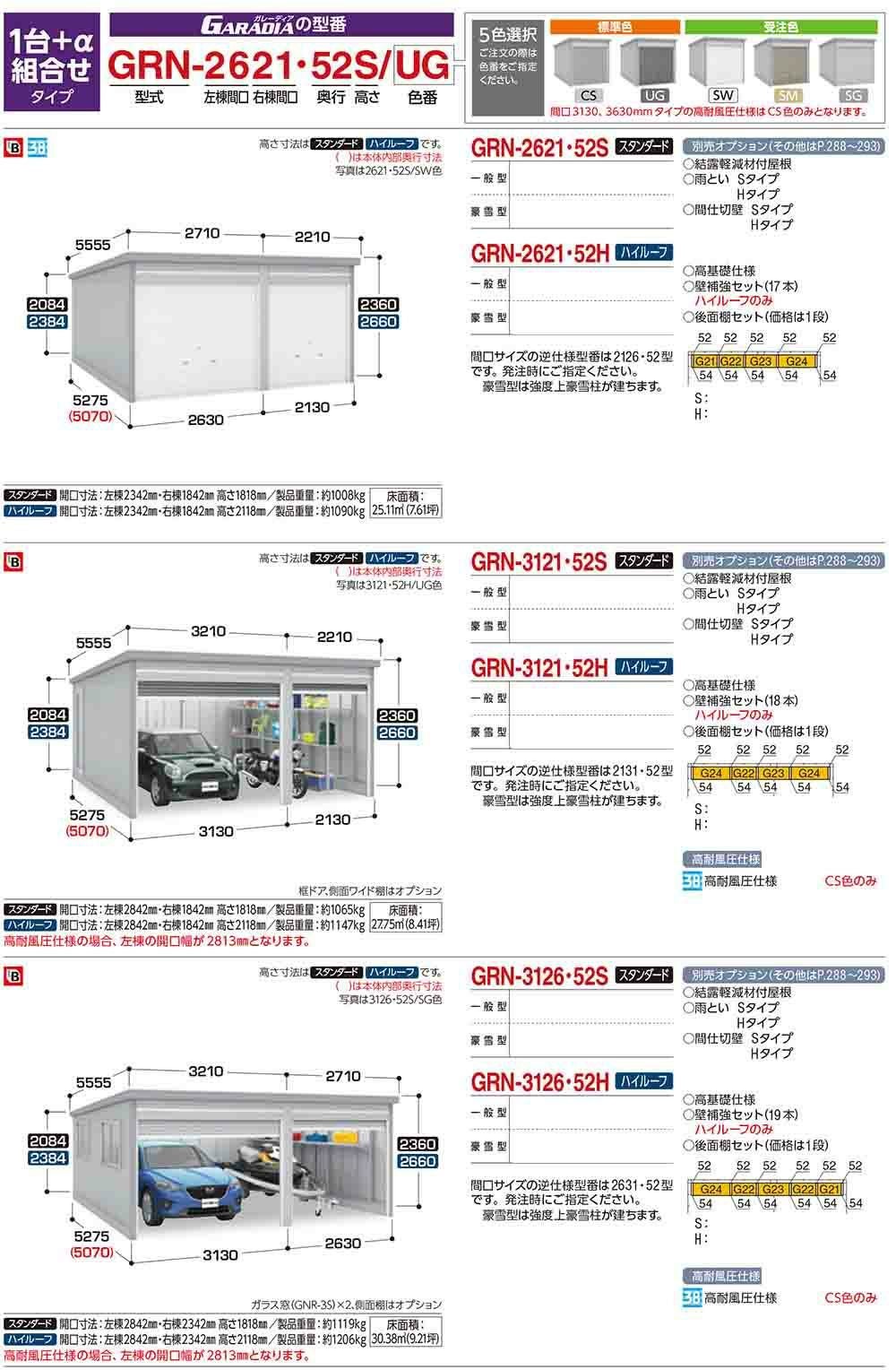 ガレーディア ガレージ GRN-3121・52S 1台+α組合せタイプ スタンダード 間口サイズ:通常仕様 豪雪型 幅5260×奥行5275×高さ2360