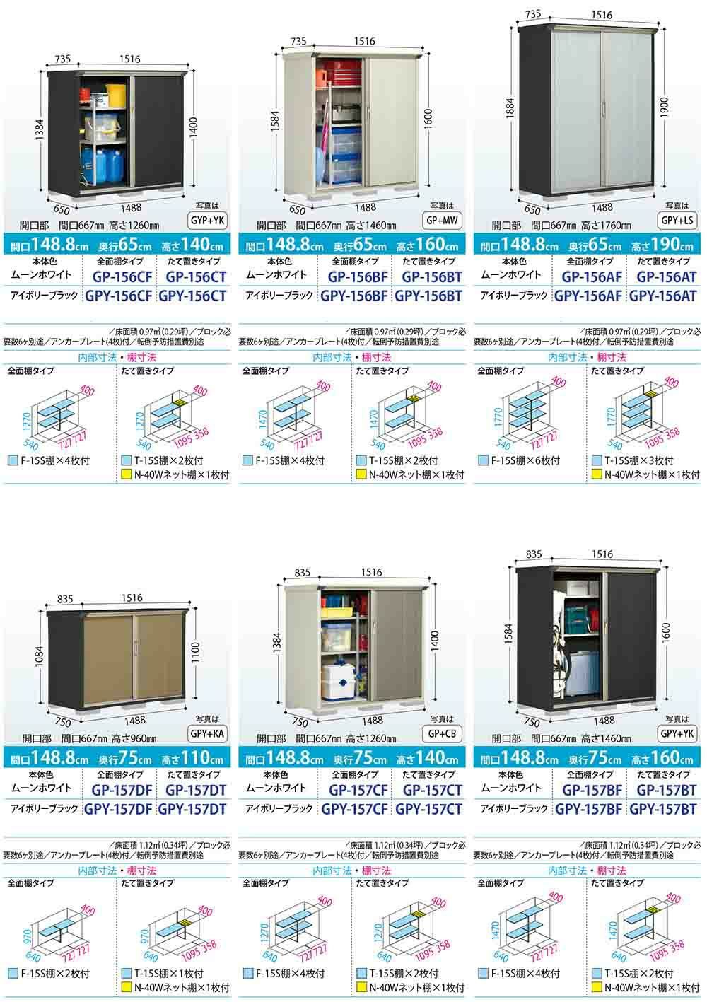 グランプレステージ ジャンプ 小型物置 GP-157DF 全面棚タイプ 間口1488×奥行750×高さ1100