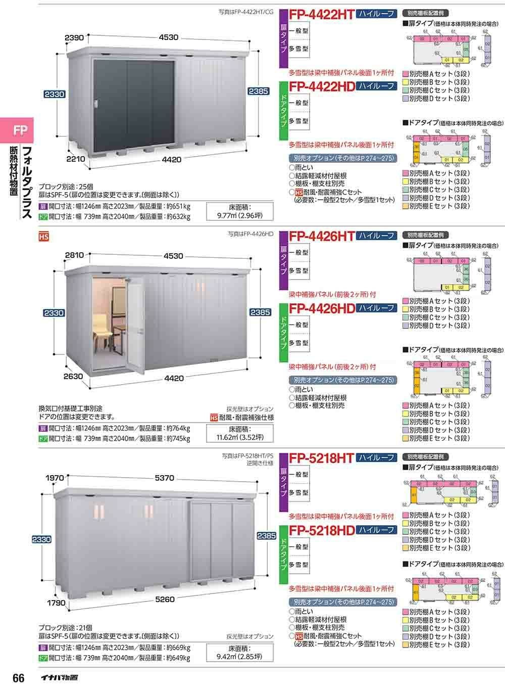 フォルタプラス 断熱材付物置 FP-4426HT(扉タイプ) ハイルーフ 一般型 幅4420×奥行2630×高さ2385