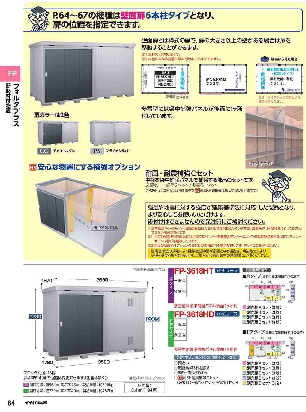 フォルタプラス 断熱材付物置 FP-3618HT(扉タイプ) ハイルーフ 一般型 幅3580×奥行1790×高さ2385