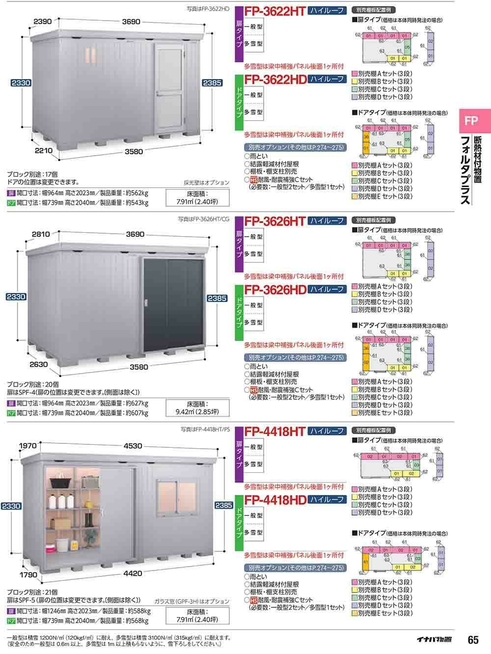 フォルタプラス 断熱材付物置 FP-3622HT(扉タイプ) ハイルーフ 多雪型 幅3580×奥行2210×高さ2385