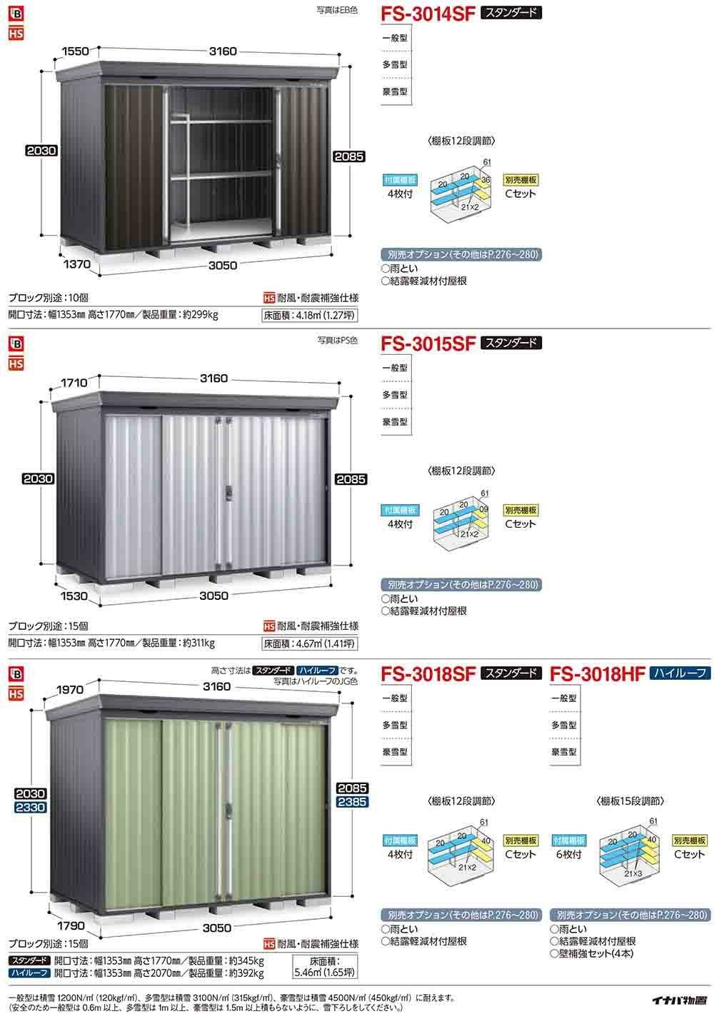 フォルタ 中型物置 FS-3014SF スタンダード 豪雪型 フランネルグレー仕様 幅3050×奥行1370×高さ2085