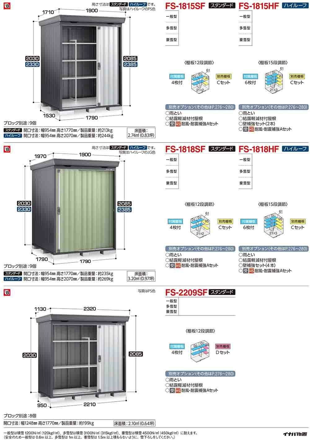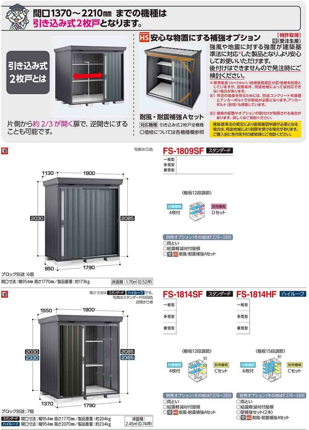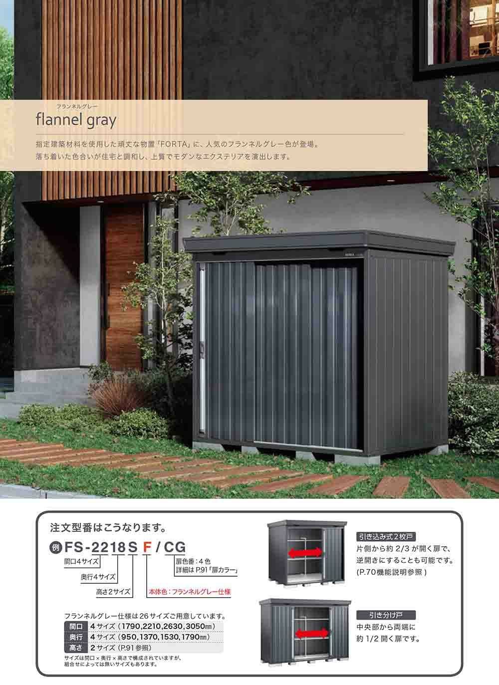 フォルタ 中型物置 FS-2218SF スタンダード 多雪型 フランネルグレー仕様 幅2210×奥行1790×高さ2085