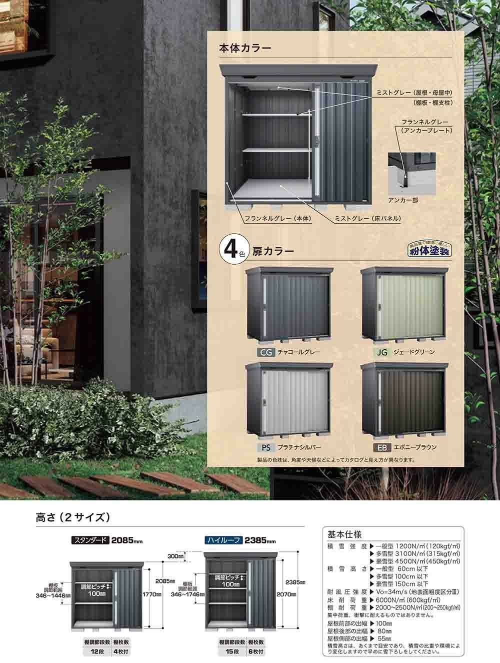 フォルタ 中型物置 FS-3009SF スタンダード 一般型・多雪型・豪雪型 フランネルグレー仕様 幅3050×奥行950×高さ2085