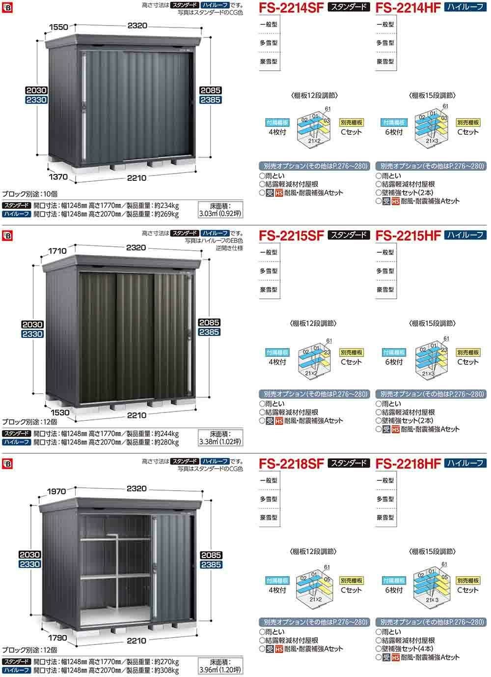 フォルタ 中型物置 FS-2214SF スタンダード 多雪型 フランネルグレー仕様 幅2210×奥行1370×高さ2085