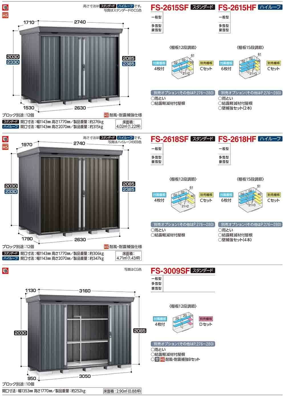フォルタ 中型物置 FS-2609SF スタンダード 一般型・多雪型・豪雪型 フランネルグレー仕様 幅2630×奥行950×高さ2085