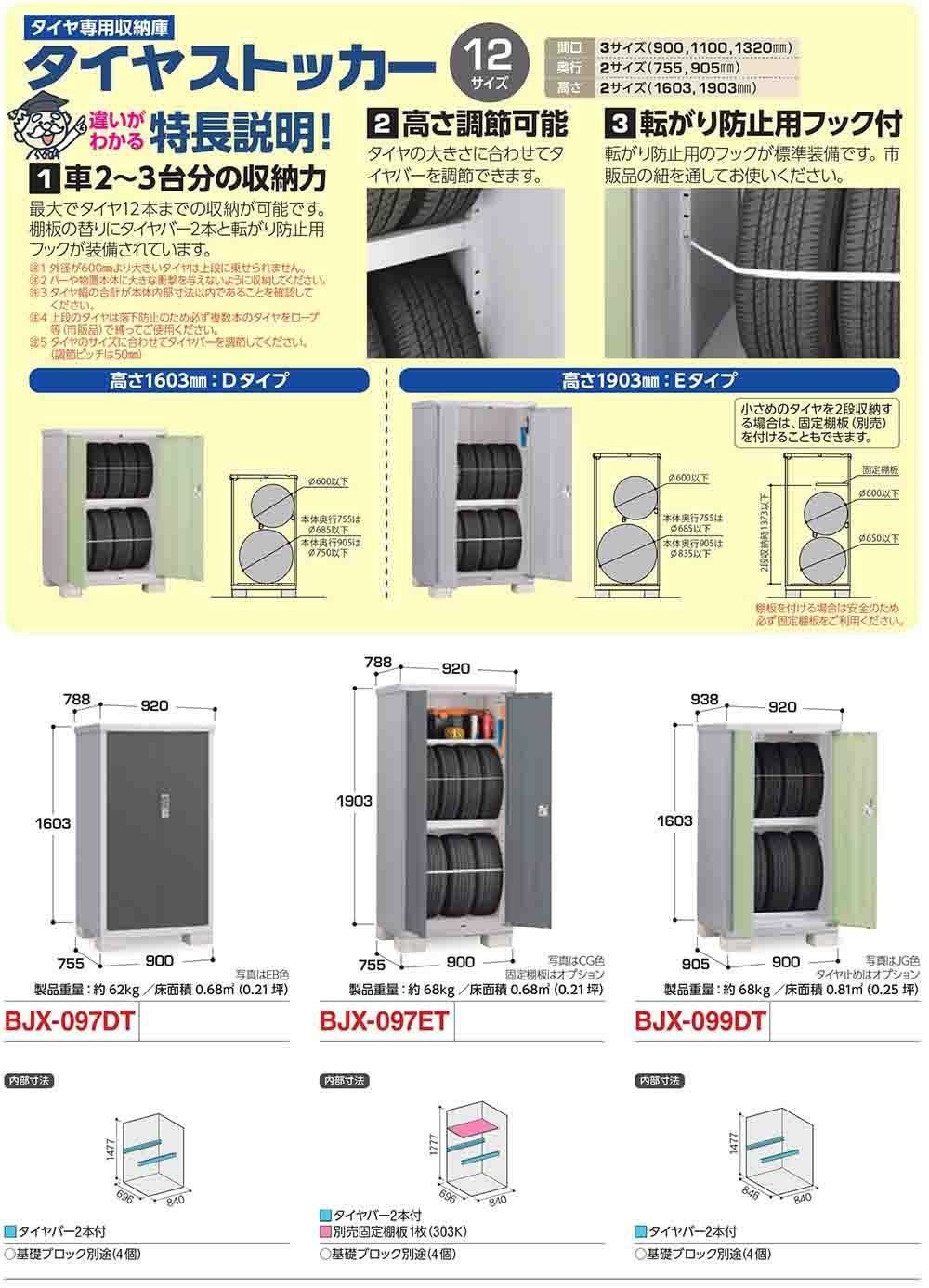 タイヤストッカー タイヤ専用収納庫 BJX-097DT 幅900×奥行755×高さ1603