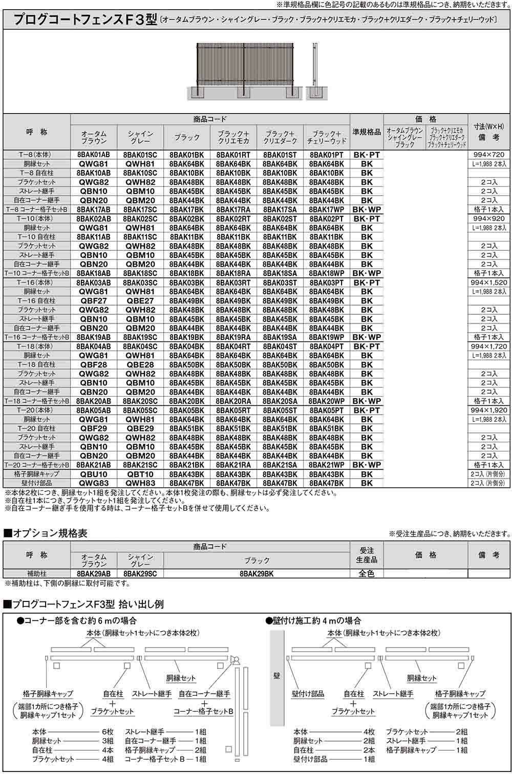 プログコートフェンス F3型 木調色 H800タイプ(T-8サイズ) コーナー格子セットB(1本入)