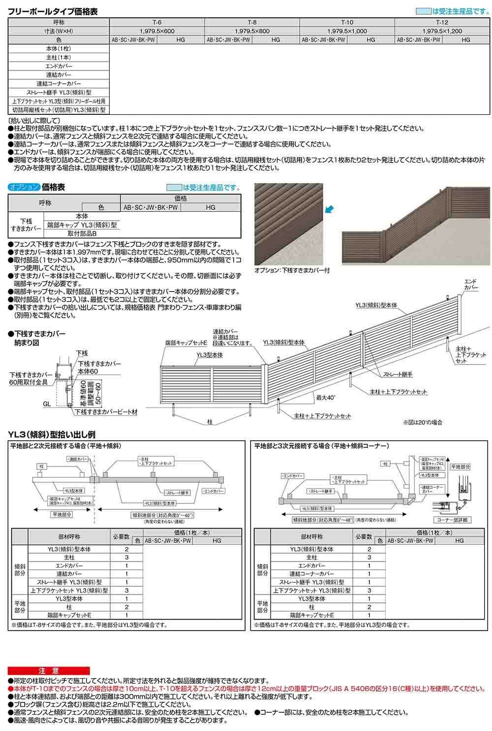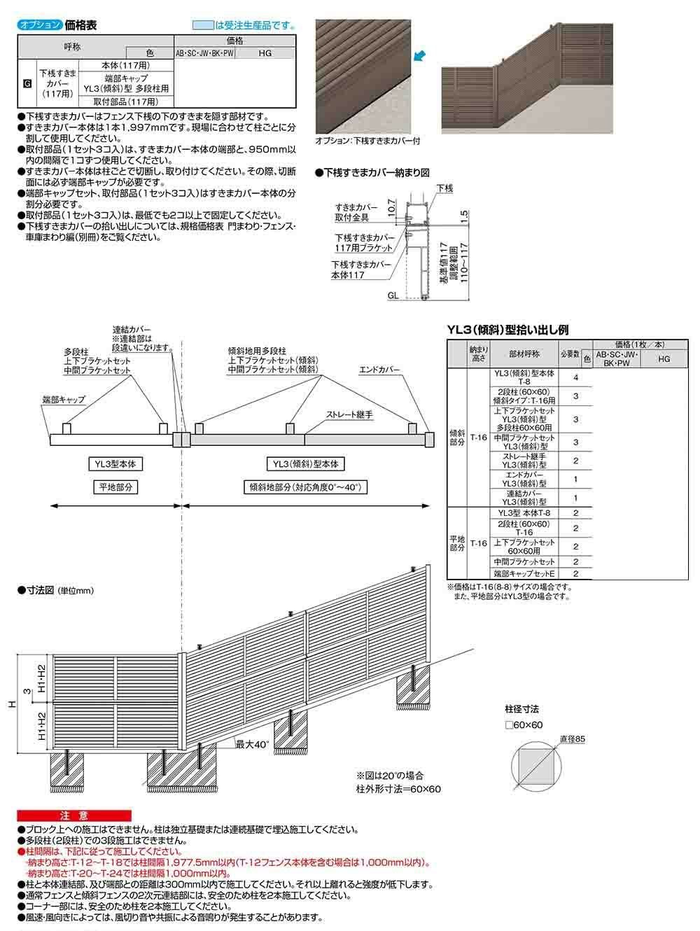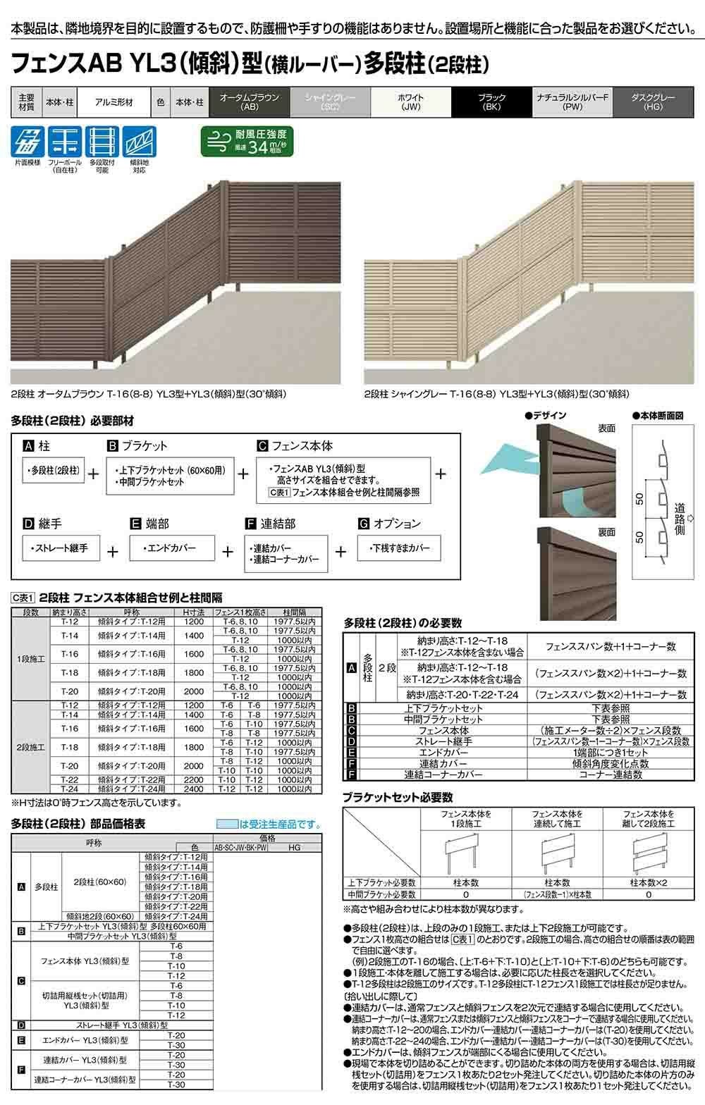 フェンスAB YL3(傾斜)型 アルミ色