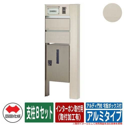 門柱 ポスト おしゃれ 宅配ボックス アルディ門柱 宅配ボックス付 独立式 支柱Bセット インターホン取付用(取付加工有) アルミタイプ