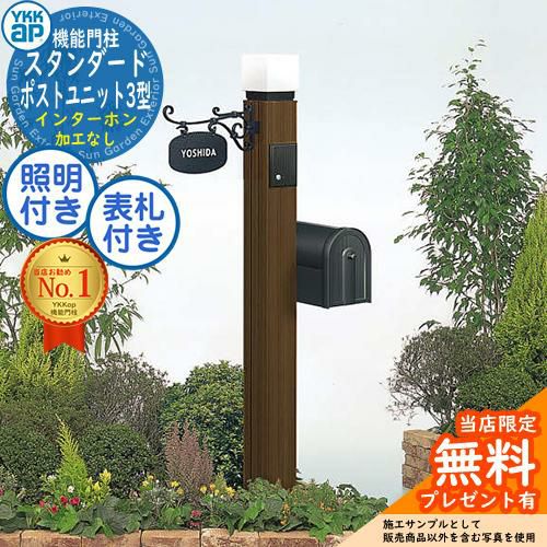 スタンダード ポストユニット3型 照明 インターホン加工なし インターホン加工付き YKK YKKap 門柱 ポスト 機能門柱 機能ポール 一戸建て用 屋外 一体型セット SMB-3 おしゃれ シンプル