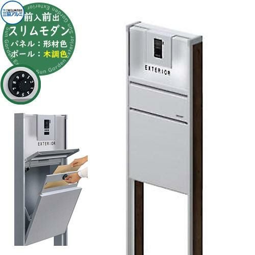 機能門柱 機能ポール スリムモダン フラットパネルタイプ 木調ポール・ポスト前入れ前出し仕様