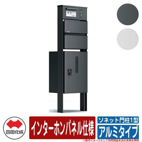 ソネット門柱1型 独立式 宅配ボックス付 インターホンパネル仕様 アルミタイプ