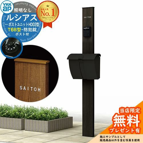セット内容 ■ルシアス ポストユニットHD03型 照明なし本体 ■ポスト(T6B型) ■ポスト取付部品9型(T6B型用)