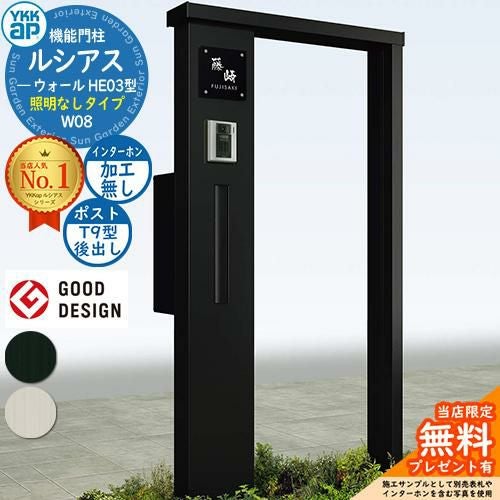 YKKap 機能門柱 ルシアス ウォールHE03型 W08 照明なしタイプ T9型セット