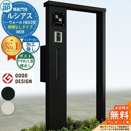 YKKap 機能門柱 ルシアス ウォールHE03型 W08 照明なしタイプ T9R(L)型セット
