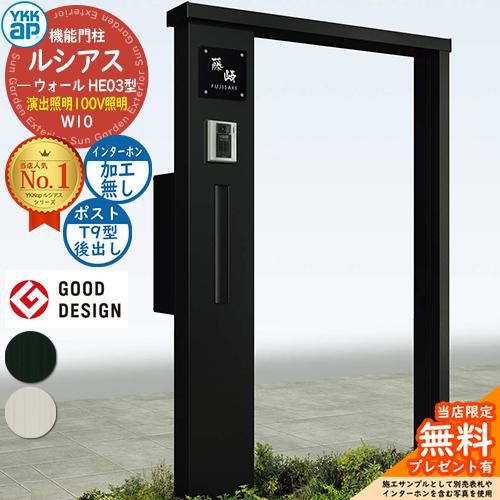 YKKap 機能門柱 ルシアス ウォールHE03型 W10 演出照明タイプ(100V照明) T9型セット
