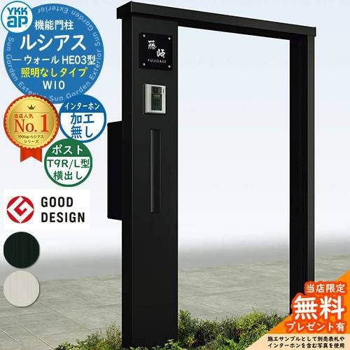 YKKap 機能門柱 ルシアス ウォールHE03型 W10 照明なしタイプ T9R(L)型セット