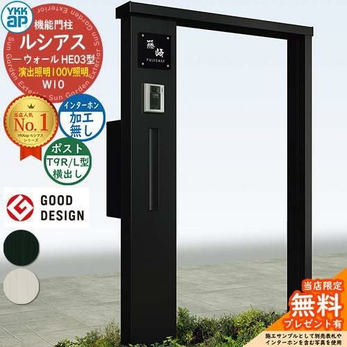 YKKap 機能門柱 ルシアス ウォールHE03型 W10 演出照明タイプ(100V照明) T9R(L)型セット