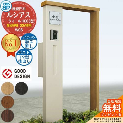 YKKap 機能門柱 ルシアス ウォールHE03型 W08 演出照明タイプ(100V照明) T9型セット