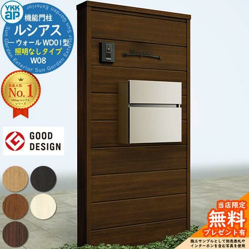 YKKap 機能門柱 ルシアス ウォールWD01型 W08 照明なしタイプ T10型セット