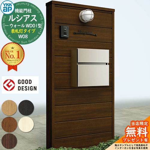 YKKap 機能門柱 ルシアス ウォールWD01型 W08 表札灯タイプ T10型セット