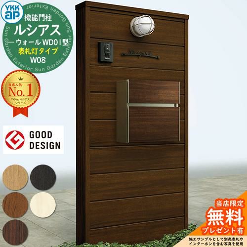 YKKap 機能門柱 ルシアス ウォールWD01型 W08 表札灯タイプ T10型セット