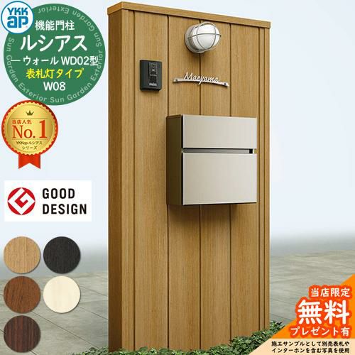 YKKap 機能門柱 ルシアス ウォールWD02型 W08 表札灯タイプ T10型セット