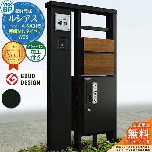 YKKap 機能門柱 ルシアス ウォールNA01型 W08 照明なしタイプ インターホン加工付き
