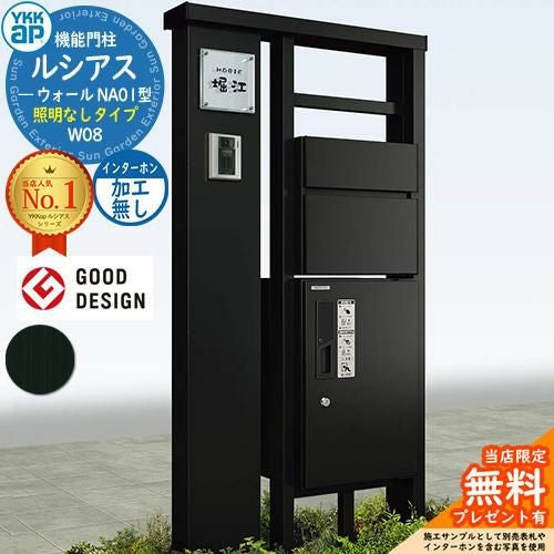YKKap 機能門柱 ルシアス ウォールNA01型 W08 照明なしタイプ インターホン加工なし