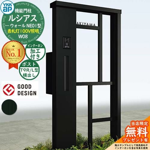 YKKap 機能門柱 ルシアス ウォールNE01型 W08 表札灯タイプ(100V照明) T9R(L)型セット