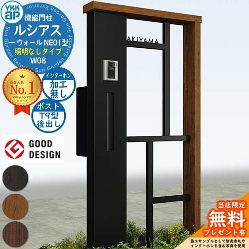 YKKap 機能門柱 ルシアス ウォールNE01型 W08 照明なしタイプ T9型セット