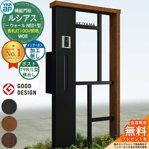 YKKap 機能門柱 ルシアス ウォールNE01型 W08 表札灯タイプ(100V照明) T9R(L)型セット