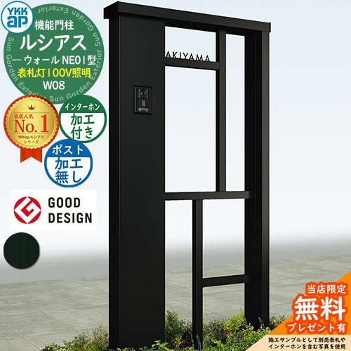 YKKap 機能門柱 ルシアス ウォールNE01型 W08 表札灯タイプ(100V照明)