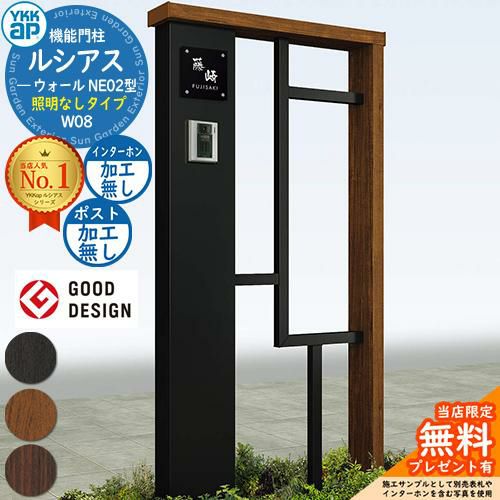 YKKap 機能門柱 ルシアス ウォールNE02型 W08 照明なしタイプ