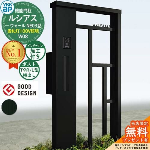 YKKap 機能門柱 ルシアス ウォールNE03型 W08 表札灯タイプ(100V照明) T9R(L)型セット