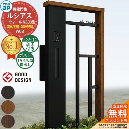 YKKap 機能門柱 ルシアス ウォールNE03型 W08 演出照明タイプ(100V照明) T9R(L)型セット