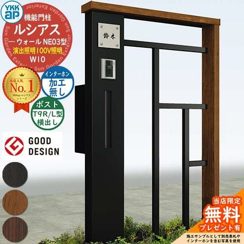 YKKap 機能門柱 ルシアス ウォールNE03型 W10 演出照明タイプ(100V照明) T9R(L)型セット