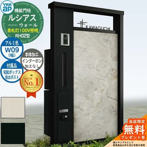 YKKap 機能門柱 ルシアス ウォールRH02型 W09 表札灯タイプ(100V照明) T9型・宅配ボックスセット