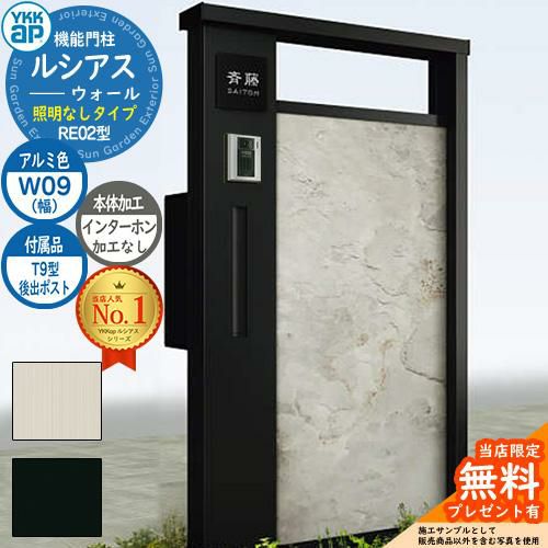 YKKap 機能門柱 ルシアス ウォールRE02型 W09 照明なしタイプ T9型セット