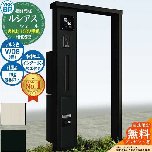 YKKap 機能門柱 ルシアス ウォールHH03型 W08 表札灯タイプ(100V照明) T9型・宅配ボックスセット